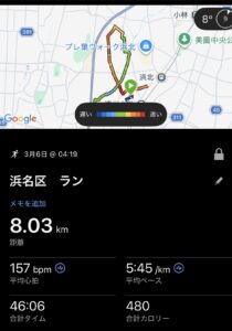 出勤時間を早めているので、早朝4時5分に起床すれば8km走れます。