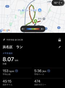 寒さは感じませんでしたが風が強く吹いていました。向かい風は体力を使います!その中、適度な刺激が入って気持ち良く走れました!