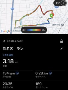 日々の出来事 朝ラン 雨が・・! 2025.11.4 今日の朝ラン 1km過ぎで雨が降ってきました。このまま走ろうと思いましたが、ひどく降ってきたので早々に終えました。 Screenshot 水曜日! 今日も元気いっぱいで頑張りましょう! 関連動画 2025.2.12 フルマラソンの指導者たるものは! この時期、マラソン・駅伝の大会は毎週テレビ放送されます。 &… 日々の出来事 2025.1.27 走った後、顔が引き締まっています! 朝ラン 体は日によって変化があります。 5km〜8km位走っ… 日々の出来事 2024.10.5 神戸マラソン ペースセッター練習会! 本日は、神戸マラソン ペースセッターの練習会でした。 若い年… 日々の出来事 2022.8.22 今からでも、秋に向けて鍛錬は出来る! 夏が終わりに近づいてきました。トップアスリートは、湿度の高い… 日々の出来事