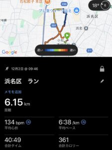 暖かく絶好の天気なに・・クラクラしてまともに走れず、途中歩きながら6kmで終えました。