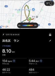 夕食が消化していないのか、走り始めは体が重く感じましたが、時間と共に軽快になってきました。